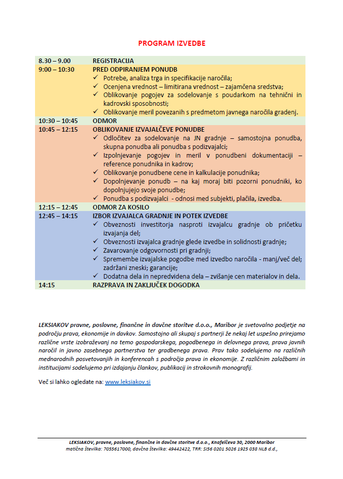 Za vse informacije o dogodku smo vam na volju na e naslovu: info@leksiakov.si ali telefonski številki 030 317 879